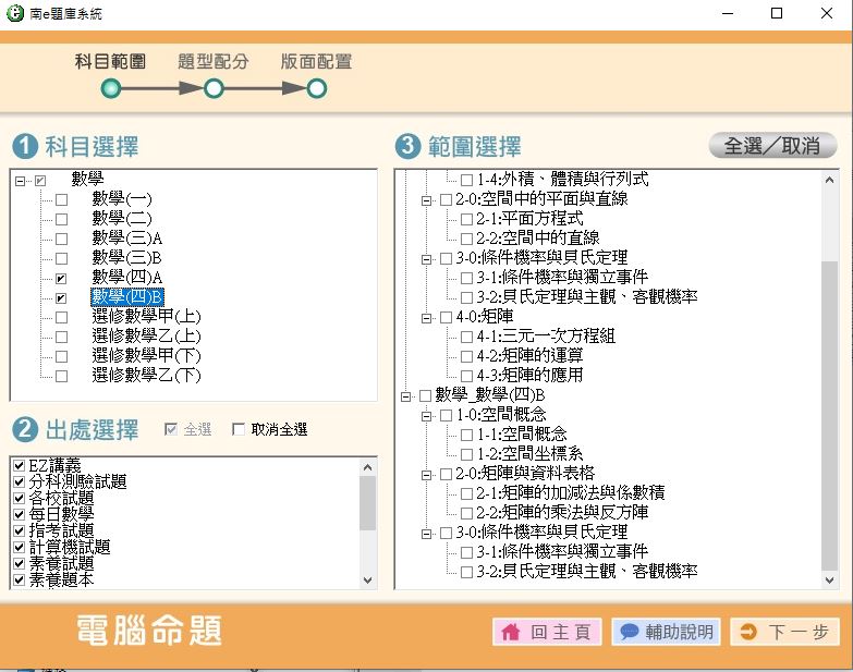 111學年下學期 高中命題光碟 南一版 數學科(一、二、三A、三B、四A、四B、選修甲上、選修甲下、選修乙上、選修乙下)(108課綱) 題庫光碟