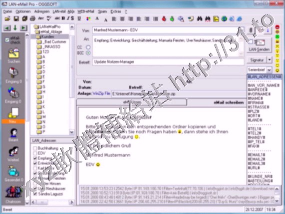 Das Programm enthaelt ein LAN/Internet-eMail-Verteilersystem. Damit koennen alle