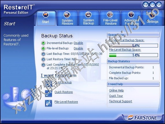 • FarStone RestoreIT v7.1 英文正式版(硬碟中建立光碟機鏡象軟體)
