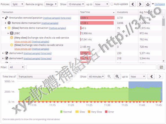 perfino自動檢測來自諸如servlet容器,EJB或RMI調用等子系統的各種業務事務。此外,它為您提