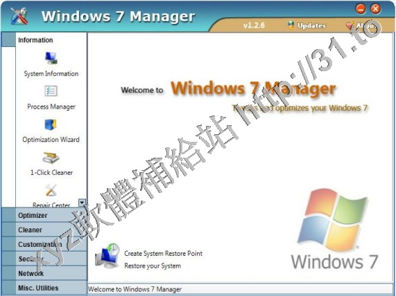 Yamicsoft Windows 7 Manager v2.1.5 英文正式版(Widnows 7 總管是優化和設置軟體)