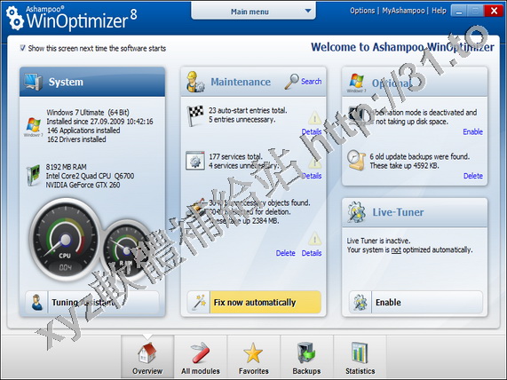 WinOptimizer 8 by contrast to its predecessor Ashampoo