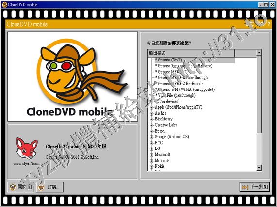 SlySoft CloneDVD Mobile v1.1.5.0 繁體中文/簡體中文/英文 多國語言版(將電影DVD轉換為手提式設備可以播放格式的軟體)